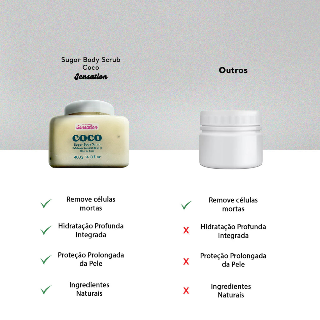 O Esfoliante Corporal Coco Sensation remove células mortas enquanto hidrata e nutre profundamente a pele. O óleo de coco, rico em ácidos graxos e antioxidantes, suaviza, melhora a elasticidade e deixa a pele com uma aparência saudável e luminosa.